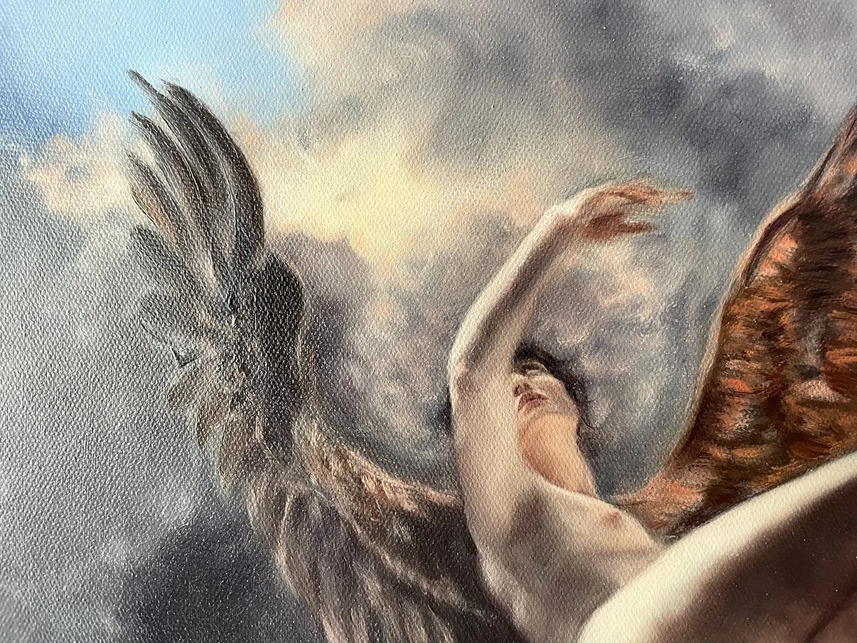 Detail from ‘Falling Angel’, an original oil painting by Karina Tarin